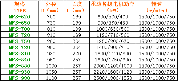 MFS 永磁联轴器 复合三盘式永磁偶合器 永磁同步联轴器 迈动工业-参数如下: